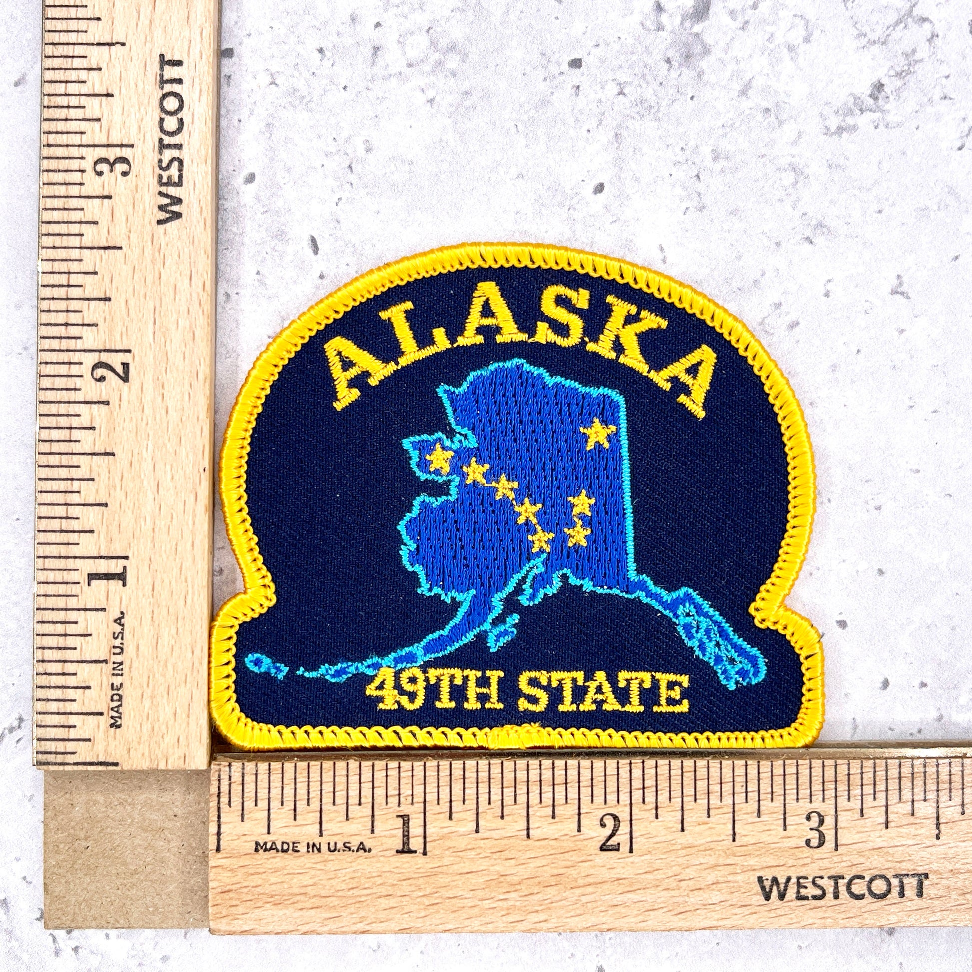 Vintage Alaska state patch, manufactured in the 1990s. Has an iron-on backing, but may need to be sewn-on due to its age. New old stock, never been used