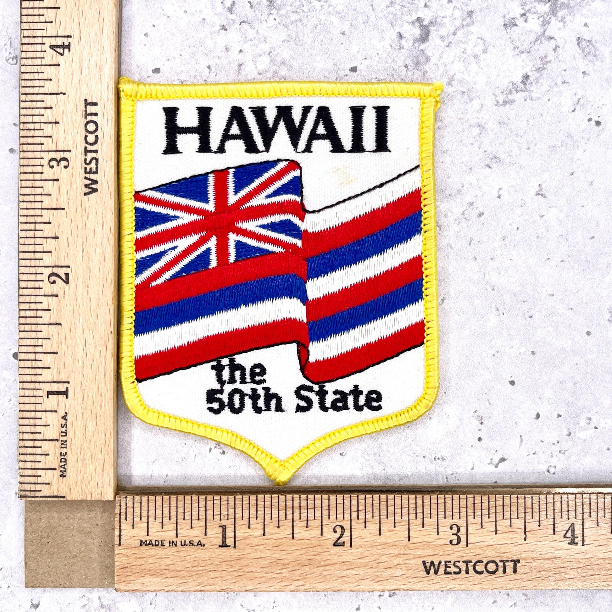 Vintage Hawaii 50th State patch. Embroidered design with an iron-on backing