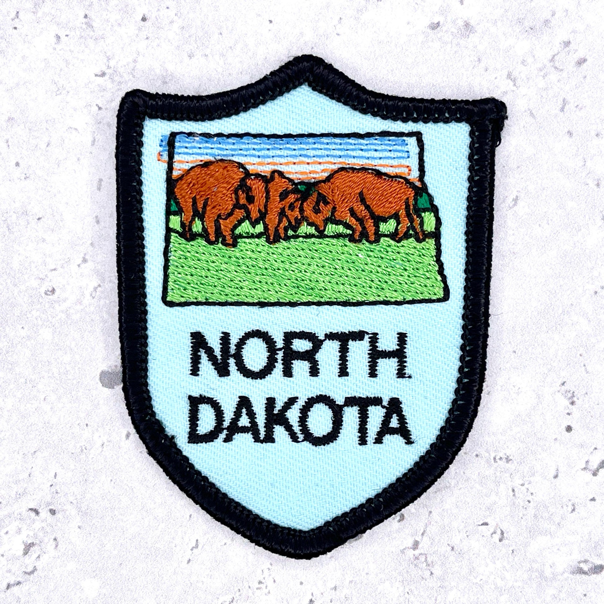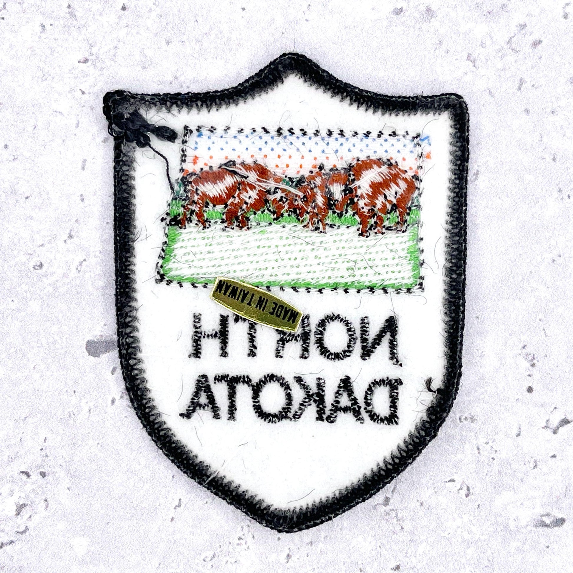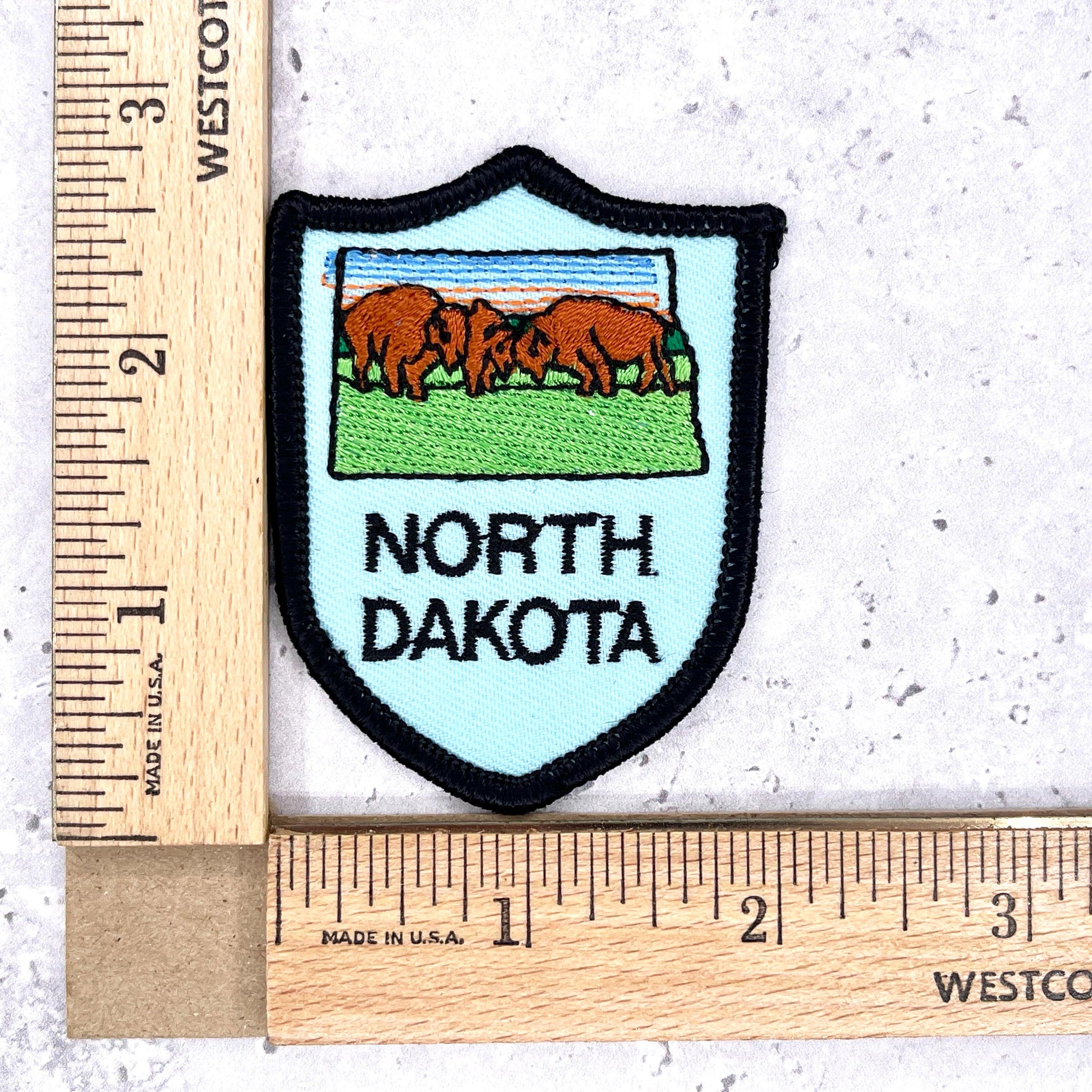 Vintage North Dakota state patch. Embroidered design with an iron-on backing